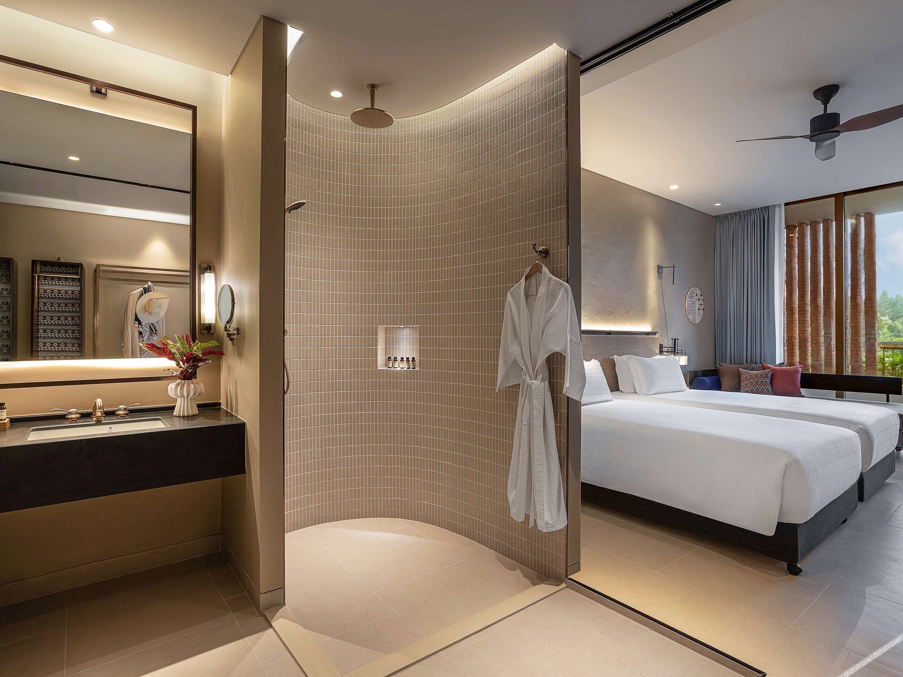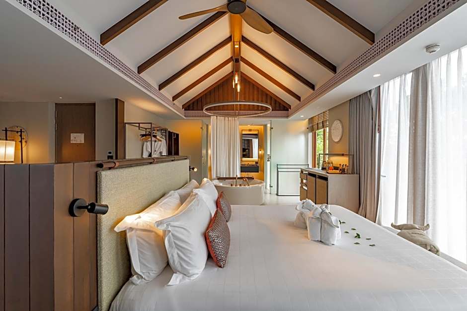 With view of green landscapes of Khao Lak,The room features a large balcony, free Wi-Fi, coffee making facilities. A 55" LED TV, plush sofa bed and a beautiful bathroom with rain shower.